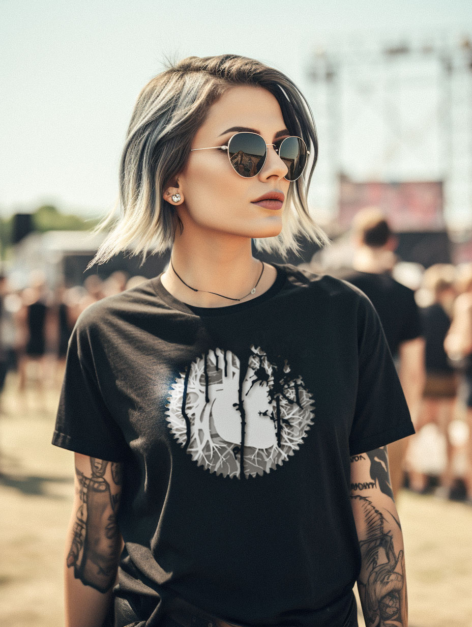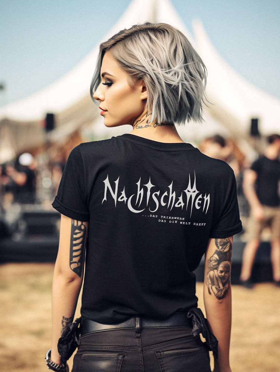 Schwarzes Lady fit Valueweight T-Shirt mit Takt der Maschinen Frontprint und Schriftzug Backprint